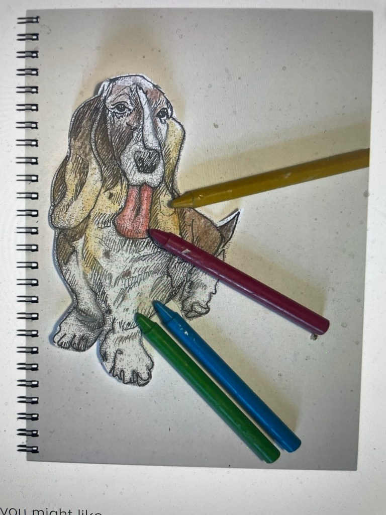 I am trying to make money for my friend’s vet bill with a Garage Sale. I sketch everyone. Bassie claimed she ate chocolate.