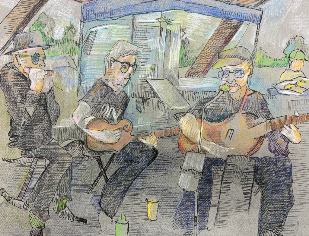 What are you good at? “ On Sunday my owner and I have our pencils and a Pilot marker and sketch. We encourage patrons to color along. Make their mark. “ Here I am !”