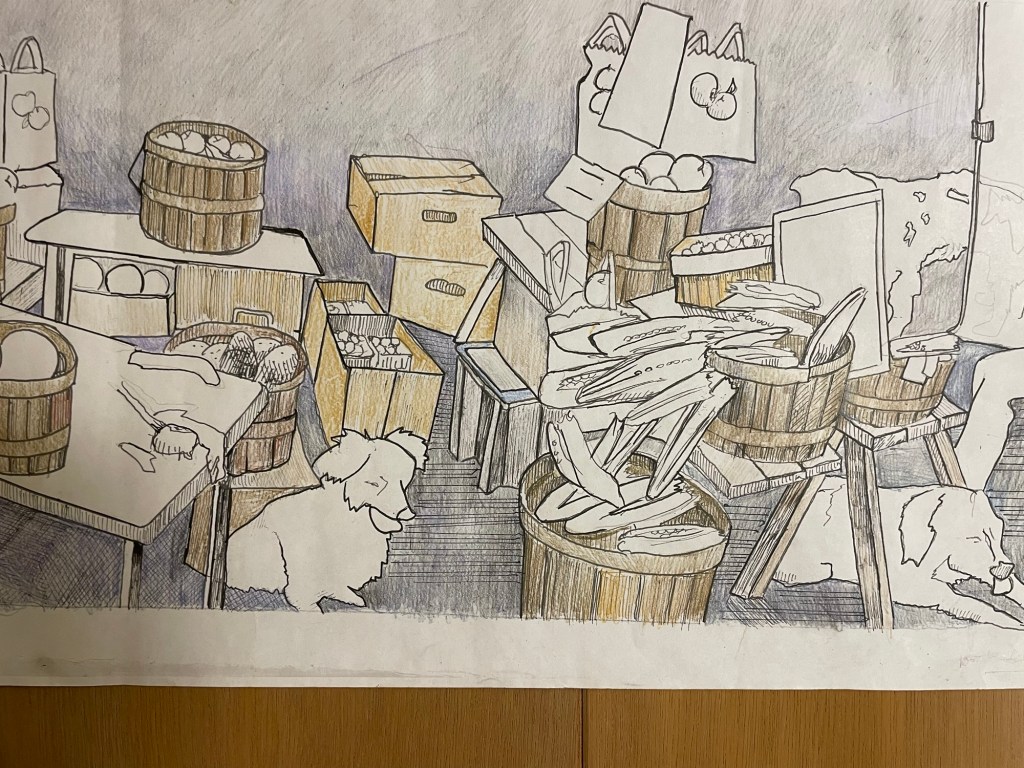 We actually go to see Hero the Pit Bull who runs the market with his owner.”