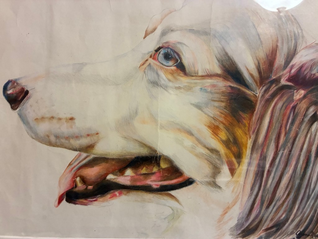 Schatzi, an intelligent dog never took up-man ship. She was proud that the Pyrenees carried pencils for sketching dogs. My owners niece did this beautiful portrait of Schatzi the Aussie.”