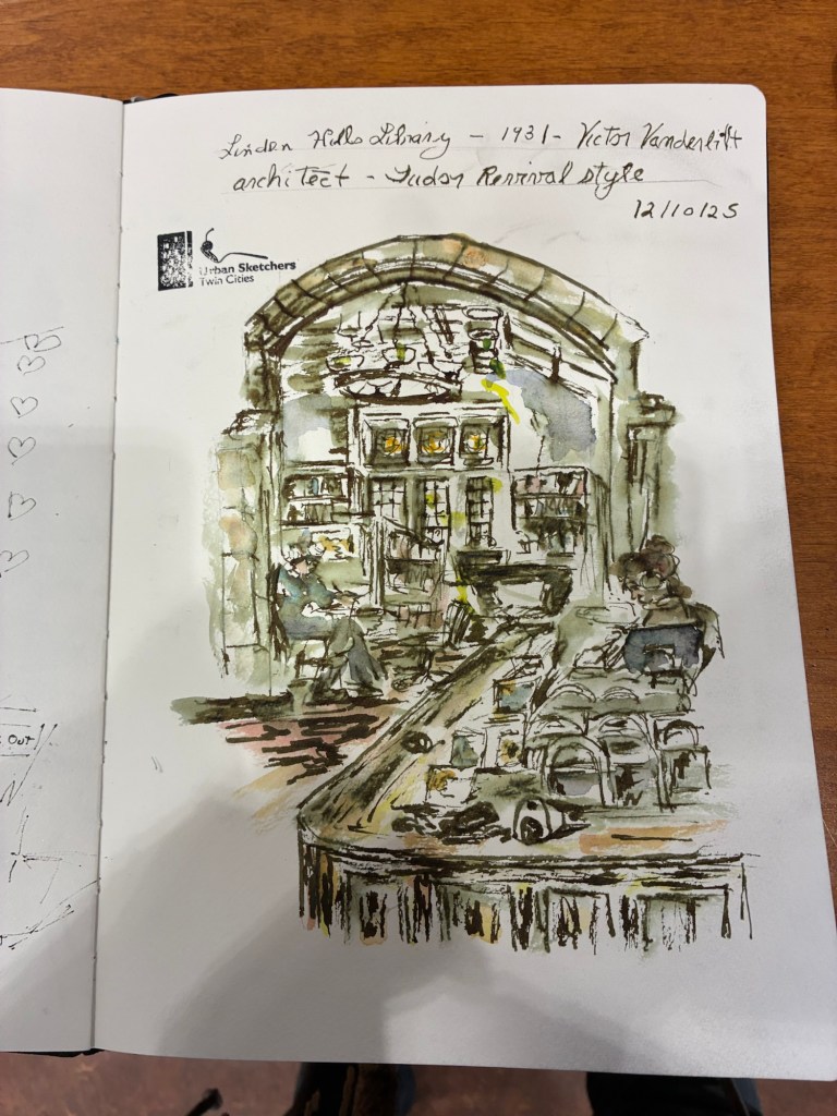 “ I have traveled along side of the sketch artist. This image is done from a friend in the Urban Sketch group that was posted.