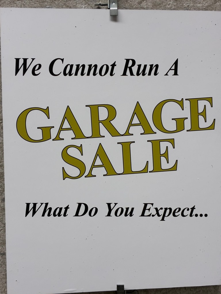 “ I tried to a DIY Garage Sale by myself, The only help I got was from Lola, my Sister who came by train from out of town. She got robbed in the city and was more concern about getting home. So, left my place to get money at the plasma center. Never showed up, leaving me to run it myself.”